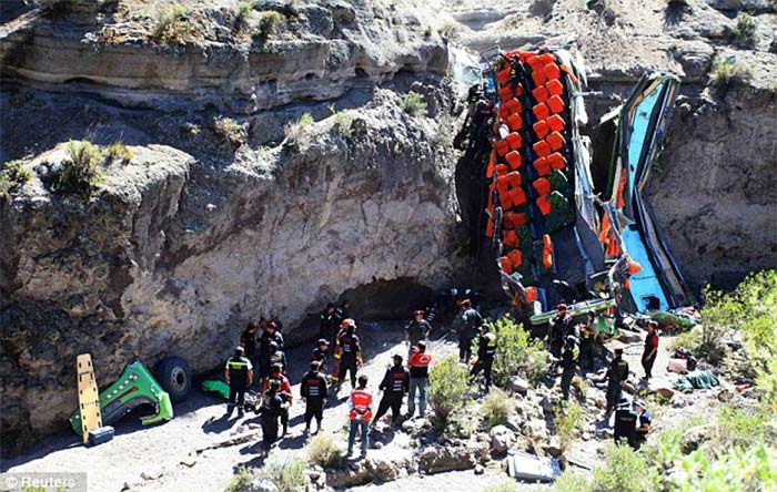 Police said the bus was travelling between two towns in the hill state when it skidded off the wet mountain road with hairpin bends and plunged into the 200-metre deep river gorge below.