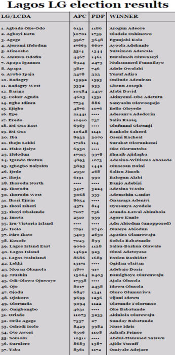 Lagos LG results at a glance Source: PUNCH