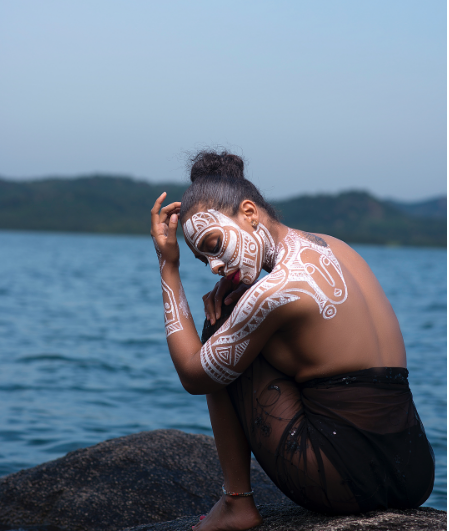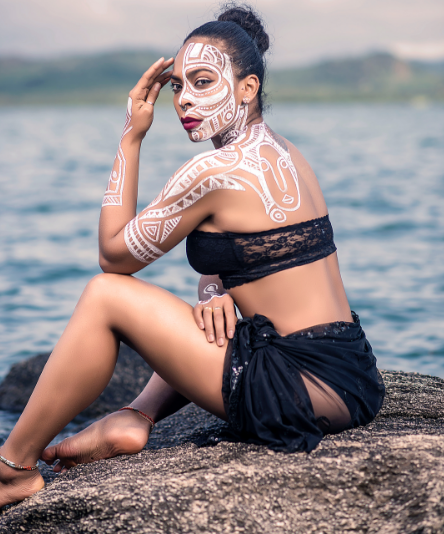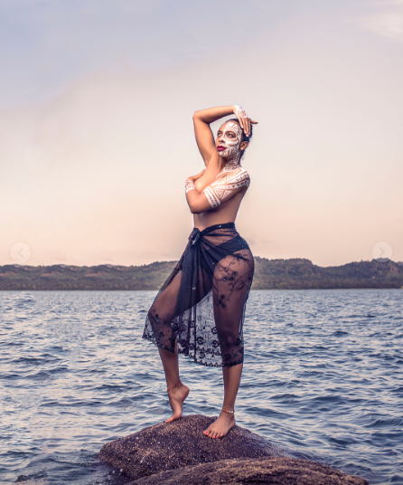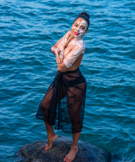 2017 Big brother Naija star, Tokunbo Idowu popularly known as TBoss is a Rivers Goddess in this photo shoot where she went topless with face and body painting inscription.
