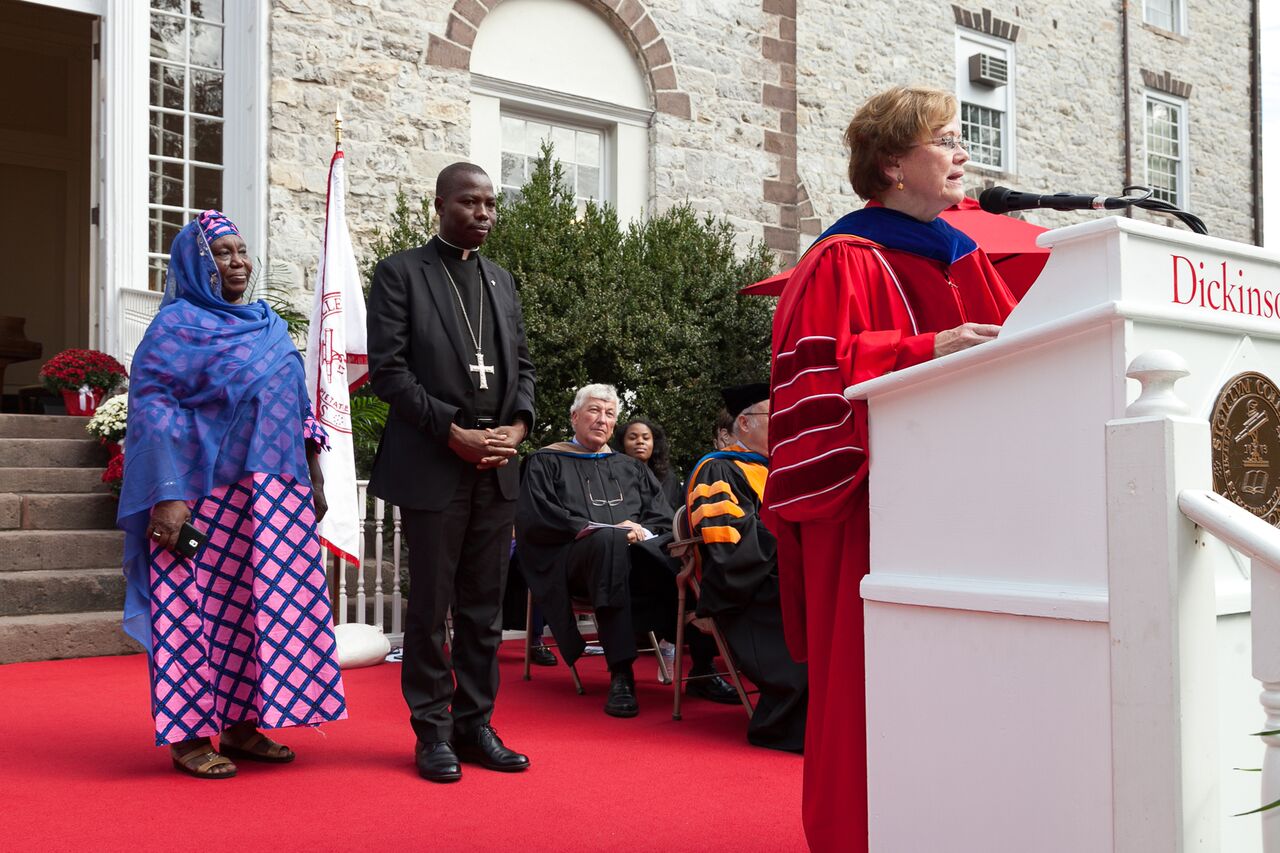 On Sunday, Bishop Stephen Mamza, Yola Diocese and Hajjia Turai A.A. Kadir, community projects organizer, American University Nigeria, presented a prayer for peace at the inauguration of Dr. Margee Ensign as president of Dickinson College.