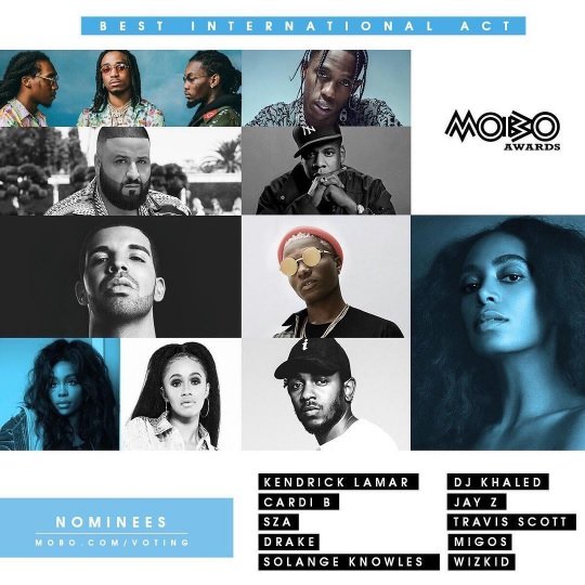 Wizkid has been announced as one the nominees for the Best International Act category of the MOBO 2017 Awards.