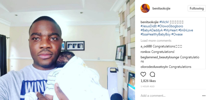 Gospel musician Benita Okojie and her husband Olawale Adeyinna have welcomed their first child, a baby boy.