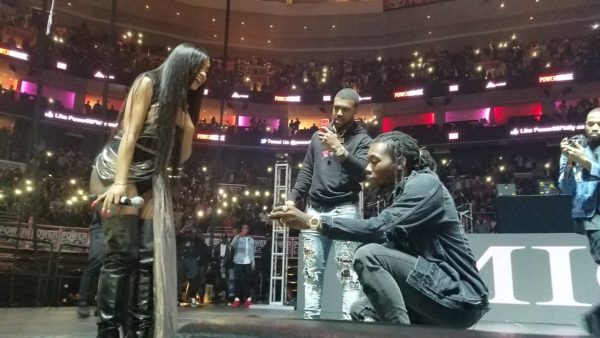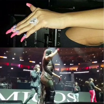 Offset went down on one knee in front of 19,000 concert lovers and proposed with an 8 Karat diamond ring, and she said YES.