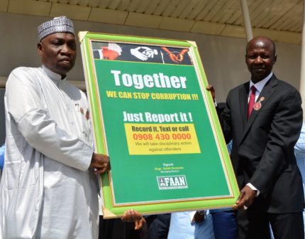“Our presence here today is to bring the message of anti-corruption to the management and staff of the Federal Airports Authority of Nigeria, FAAN and other aviation workers”, he said.