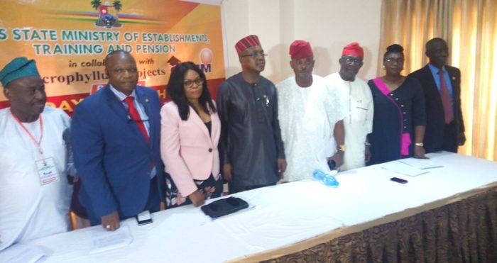 Commissioner for Establishments, Training and Pensions, Dr. Benson Oke (4th left) and other top government officials at the training