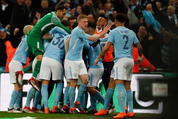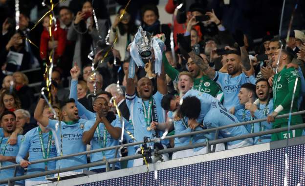 Manchester City have won their first trophy under Manager Pep Guardiola as they humiliate Arsenal 3-0 to win the Carabao Cup at the Wembley Stadium.