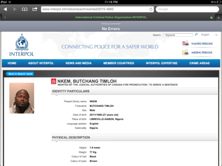 Timloh Butchang Nkem, is wanted by the Canadian judicial authorities for raping a girl at the University of Saskatchewan on January 1 2012.