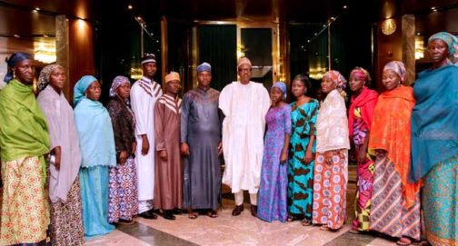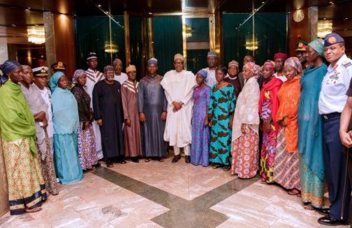 President Muhammadu Buhari on Monday met with the recently released three University of Maiduguri lecturers and the 10 women abducted by insurgents in the Northeast.