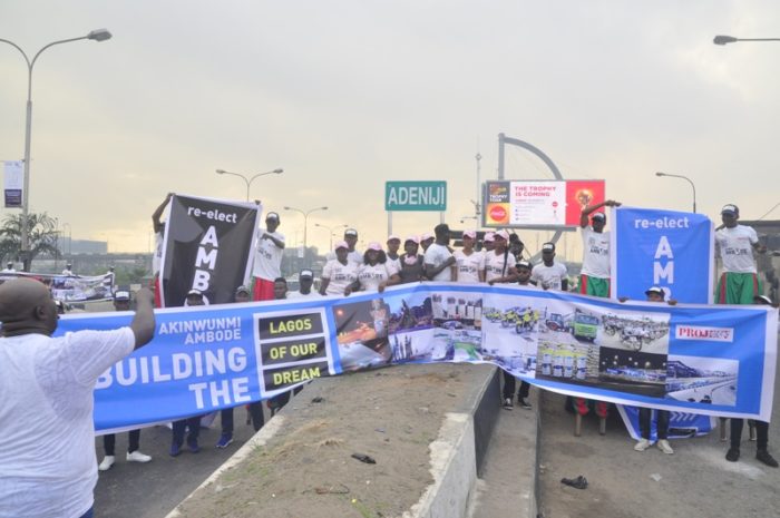 The display of the Governor’s achievements took place simultaneously in different locations- Third Mainland Bridge, Surulere and Maryland, and it was an awareness campaign to sensitize Lagos residents on the need to support the Governor for re-election in 2019.