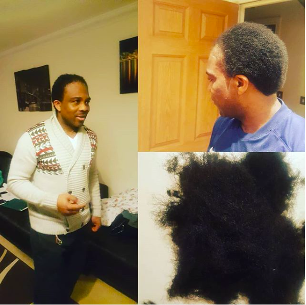Ogbonna Kanu, husband to popular fashion entrepreneur Laura Ikeji, who has always maintained braids, has finally cut his hair and the gesture he says is for his wife.