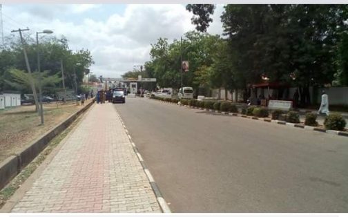 President Buhari’s convoy on Benue street. No one is welcoming him here