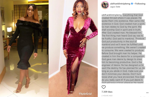 Ubi in his post said God created man to have desires and also to be fruitful and productive. This single act has caused a lot of uproar on social media as some Nigerians think Ubi should have simply created single posts for each woman, instead of putting them together.