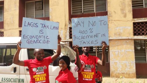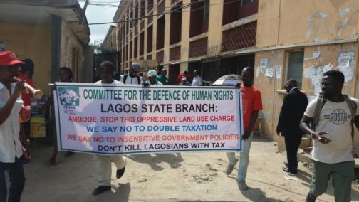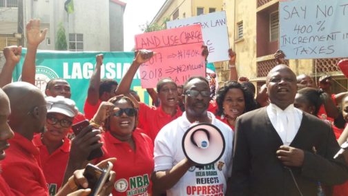 Some lawyers at the Ikeja High Court Lagos this morning protested the arbitrary increase of the Land Use Charge by the Lagos State Government.