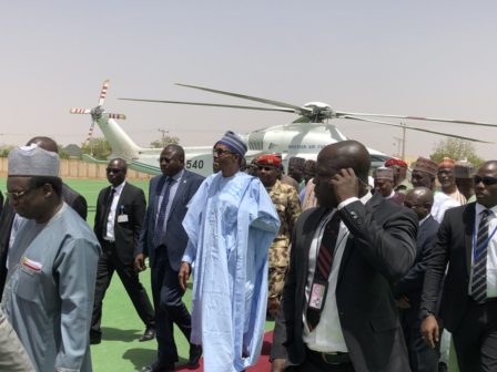 President Muhammadu Buhari on Wednesday visited Damaturu, Yobe State capital as part of his tour of troubled areas in the country.