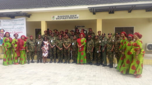 Senior Officers with the wife of the 81 Division General Officer Commanding, Mrs Grace Udoh, at the newly inaugurated renovated Nigerian Army Reference Hospital in yaba, Lagos