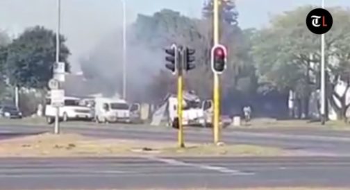 In dramatic cellphone footage of the incident recorded by a motorist, the assailants seal off a block in the suburb of Boksburg, east of Johannesburg’s commercial center, before calmly detonating explosives under the cash vans.
