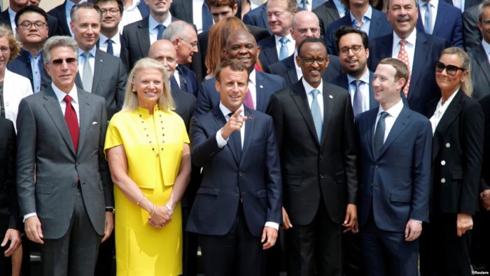 Macron on Wednesday welcomed Zuckerberg and the leaders of dozens of other tech companies, including Microsoft, Uber, and IBM, at a conference named “Tech for Good” meant to address things like workers’ rights, data privacy and tech literacy.