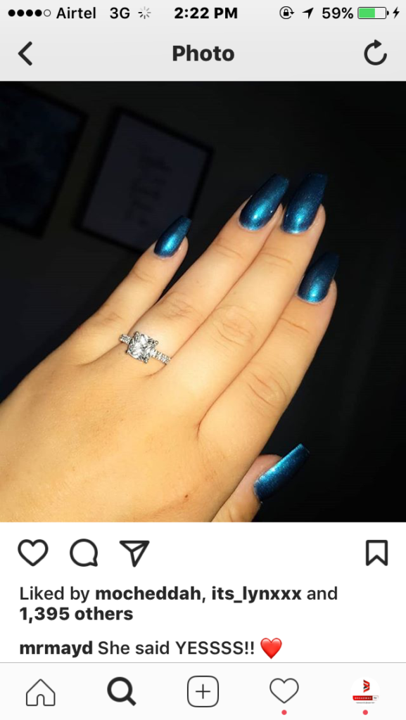 MayD whose girlfriend is already pregnant shared a picture of a hand wearing a ring and captioned it “She said YES”.