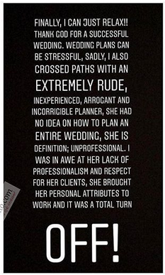 The newlywed says the planner wasn’t professional enough, rude and brought her personal attributes to work.Read below.