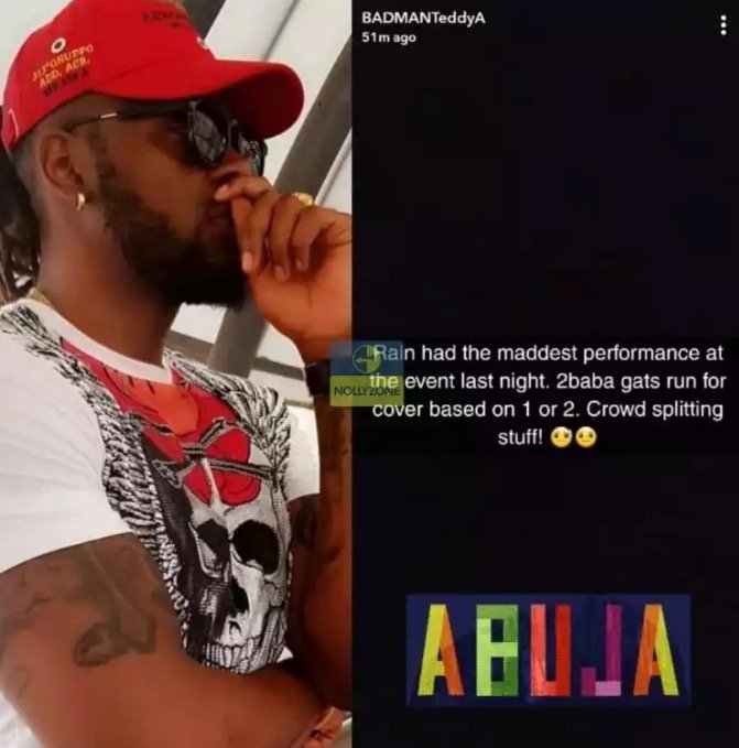 BBNaija ex housemate and Alpha records ceo Teddy A, has lamented his ordeal during his performance with ace musician 2baba in Abuja.