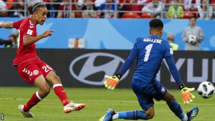 That miss proved crucial as the Danes hit Peru on the counter-attack in the second half with Christian Eriksen releasing Yussuf Poulsen, who had conceded the penalty, and he fired past Pedro Gallese.