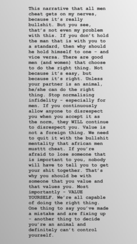 Celebrity designer Toyin Lawani posted a message insisting that men are allowed to cheat and nobody can change it. This caused a frenzy which led to Simi’s opinion on the issue.