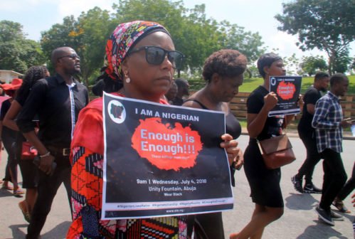 A huge number of human rights activists took to the streets of Abuja, Nigeria’s capital on Wednesday to protest the incessant killings in the country.