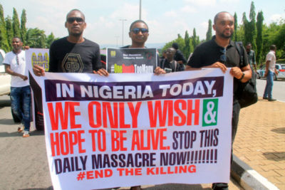 A huge number of human rights activists took to the streets of Abuja, Nigeria’s capital on Wednesday to protest the incessant killings in the country.