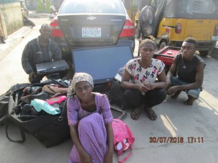 A couple, Mr and Mrs Uroye Teddy, their son, Tega Teddy and his girlfriend, Karima Edom have been arrested by the police at Langbasa, Ajah, Lagos southwest Nigeria, for burglary and theft.