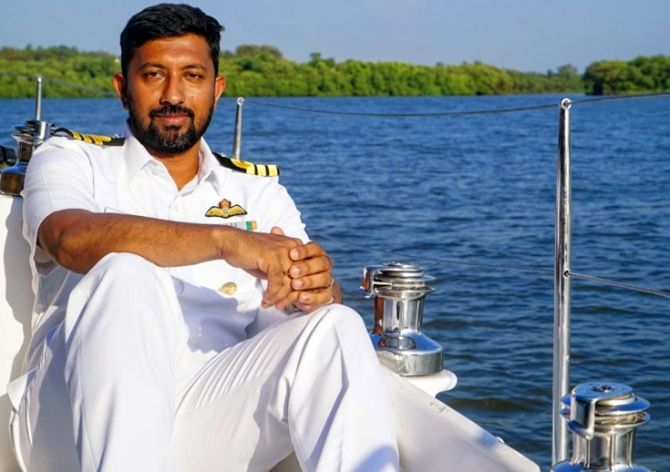 The 39-year-old Indian Navy officer suffered a serious back injury when the mast of his 10-metre vessel, Thuriya, was broken in extreme weather on Saturday.