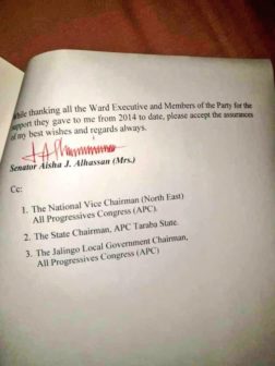 Aisha Alhassan was the governorship candidate of the APC in the 2015 election in Taraba State.