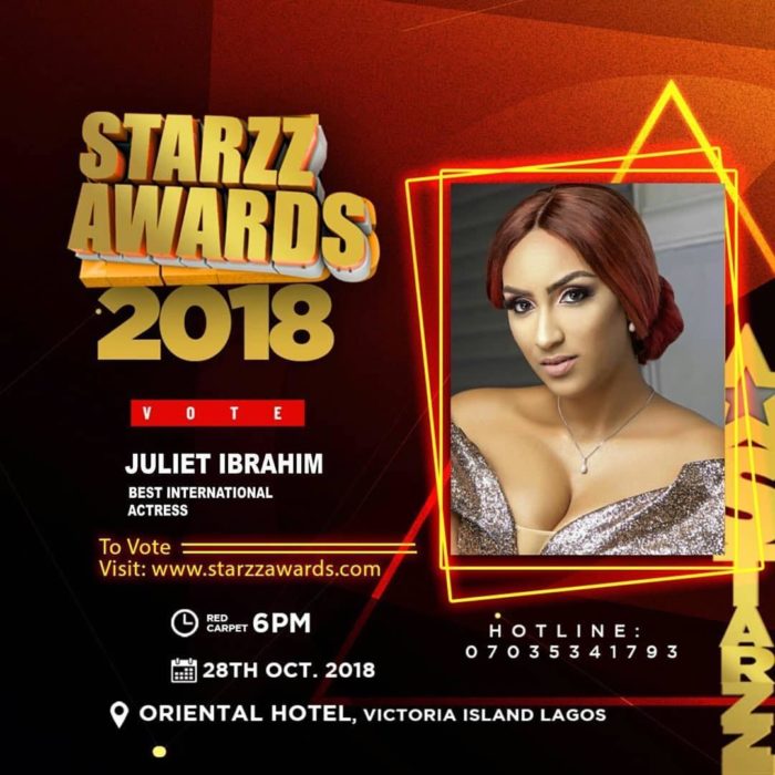 Thanks @starzzawards for the nomination 🤗 #teamjulietibrahim let’s vote to take this baby home. 🤗😘👌🏽👌🏽😁 #actress #actorslife