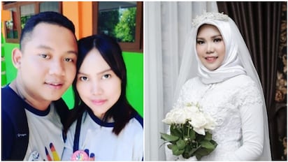 Report has it that she and her fiance Rio Nanda Pratama had joked that if he never made it back in time for their wedding, she should take photos and send to him. And that is exactly what she has done.