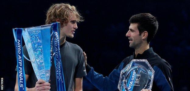 Djokovic, 31, was the heavy favourite to win a sixth finals title but was outclassed 6-4 6-3 by the German.