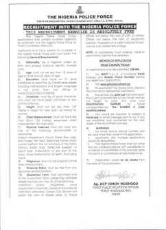 According to the police, eligible applicants must hold O’Level certificate with five credits and at least a pass in English and Mathematics, at not more that two sittings.