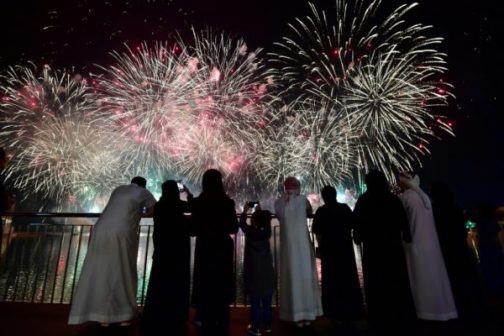 In Dubai, fireworks lit up the sky over the world’s tallest building, the Burj Khalifa, to the delight of onlookers, while nearby Ras al-Khaima sought to enter the Guinness Book of Records with the world’s longest fireworks show.