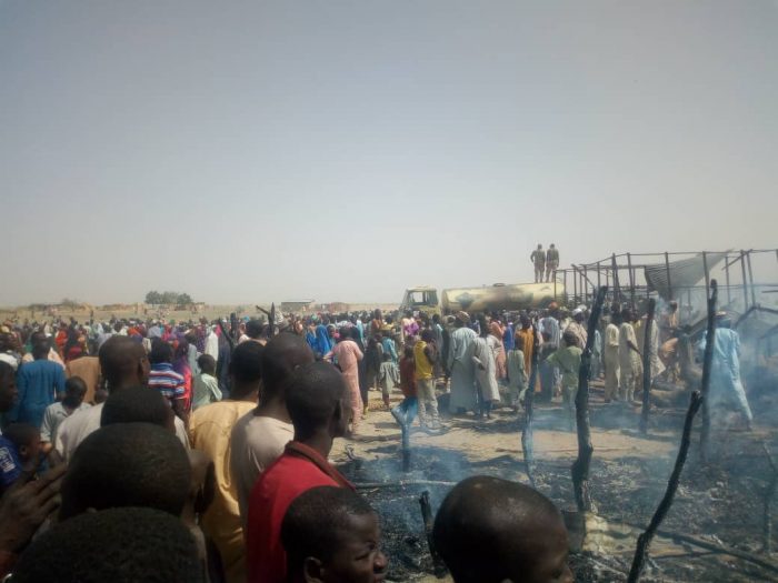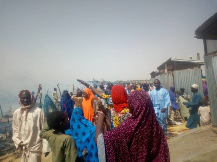 Fire on Thursday razed the Monguno Internally Displaced Persons, IDP, camp in Monguro, Borno State.