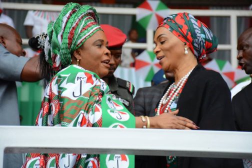 The Jonathans were at the occasion in the company of wife of the presidential candidate of the PDP Dr. (Mrs.) Jennifer Douglas Abubakar and wife of the President of the Senate, Dr. (Mrs.) Toyin Saraki.