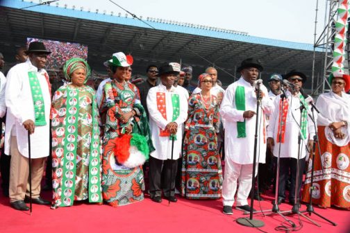 Former President Goodluck Jonathan and wife Dame Patience Jonathan on Monday, graced the presidential campaign rally of the Peoples’ Democratic Party (PDP) in Rivers State.