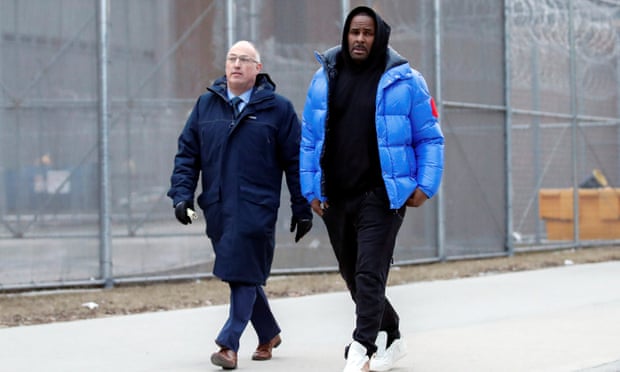 R Kelly walked out of a Chicago jail after posting $100,000 (£75,500) bail that allows him to go free while awaiting trial on charges that he sexually abused four people dating back to 1998, including three underage girls.
