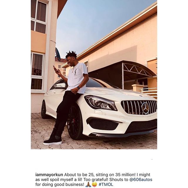 The hit maker has several singles to his name including Yawa, Sade, Che Che, and Mama. In October 2018, he released singles “Posh” and “Fantasy” featuring Olu Maintain. His first studio album titled “The Mayor of Lagos” was released on the 16th of November 2018. Check out his newly acquired white benz.