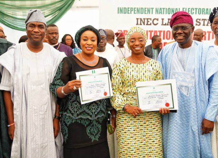 Lagos State Governor-elect, Babajide Sanwo-Olu on Friday received Certificate of Return from the Independent National Electoral Commission, INEC, for winning the March 9 governorship election in the state.
