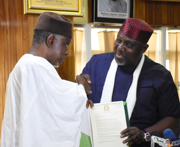 Rasheed, while presenting the Certificate to Gov. Rochas Okorocha of Imo, said the university located in Umuagwo, now became the second University to be established by the state.