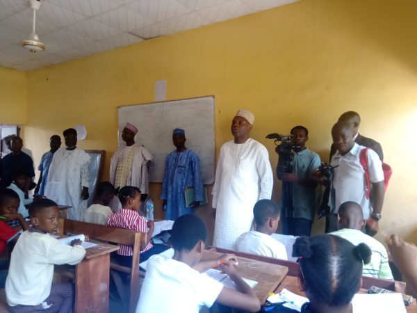 Mr Sonny Echono, Permanent Secretary, Federal Ministry of Education monitoring the conduct of 2019 National Common Entrance Examination at the Model Primary school, Maitama.