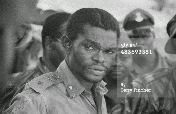 This interview with the most important man in the Nigerian war took place at night. Whisky and beer were abundant, uniformed go-go girls played DJ, Adekunle danced and petted his mascot, a small mountain goat named “Ojukwu”.