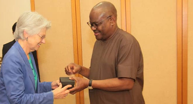 The Charge D’Affairs, Embassy of Netherlands, Mrs Marian Van De Cappello congratulated the Rivers State Governor on his well deserved victory during the Governorship Election.