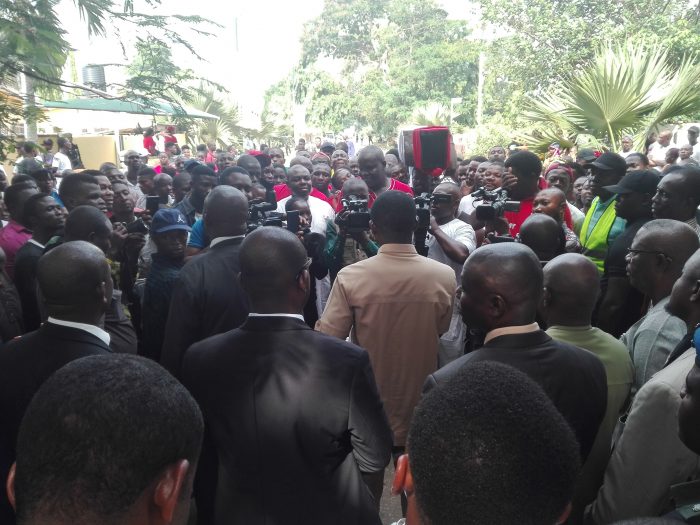Their protest terminated at the Government House, where they were received by Shaibu.