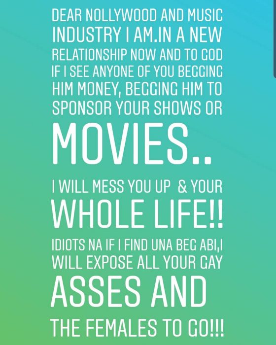 Ik Igbonna, Annie, 2face (I am sure you understand why you are dragged into this dirt??), Eniola, Praise, Juju , TOYIN and co be warned, I truly don’t want problem!! But I will beat you up, if you can beat me get ready!! #DROPS MIC