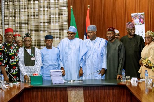 Vice President Osinbajo joined cabinet Ministers and other officials at the signing of the 2019 budget by President Muhammadu Buhari, at the Presidential villa