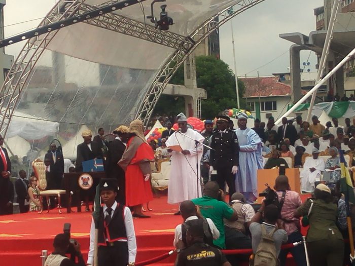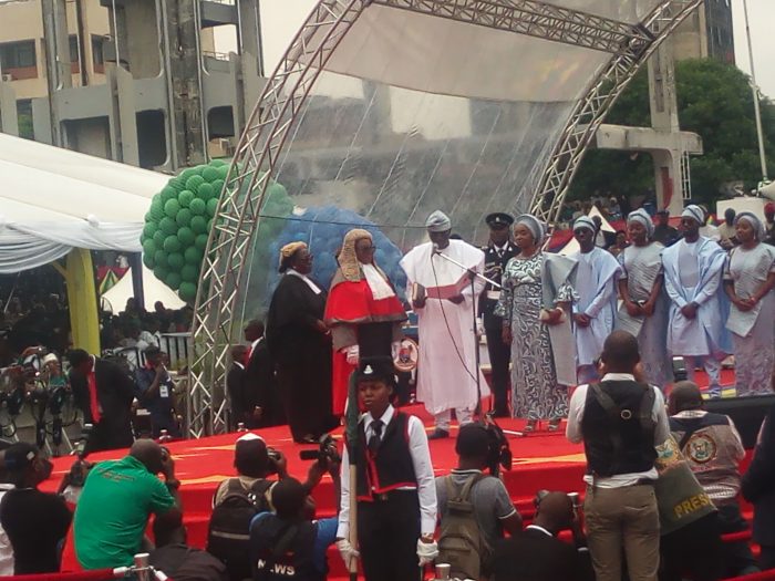 Mr Babajide Sanwo-Olu was on Wednesday sworn-in as the 15th Governor of Lagos State at the Tarawa Balewa Square, TBS, on Lagos Island.